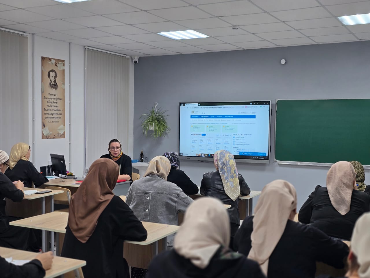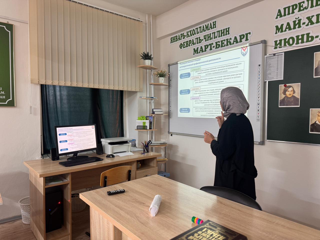 Оборудован компьютерный кабинет, кабинет физики, химии, биологии,ОБЖ, английского языка,чеченского языка,кабинет технологии, кабинет начальных классов.