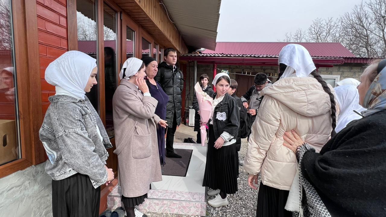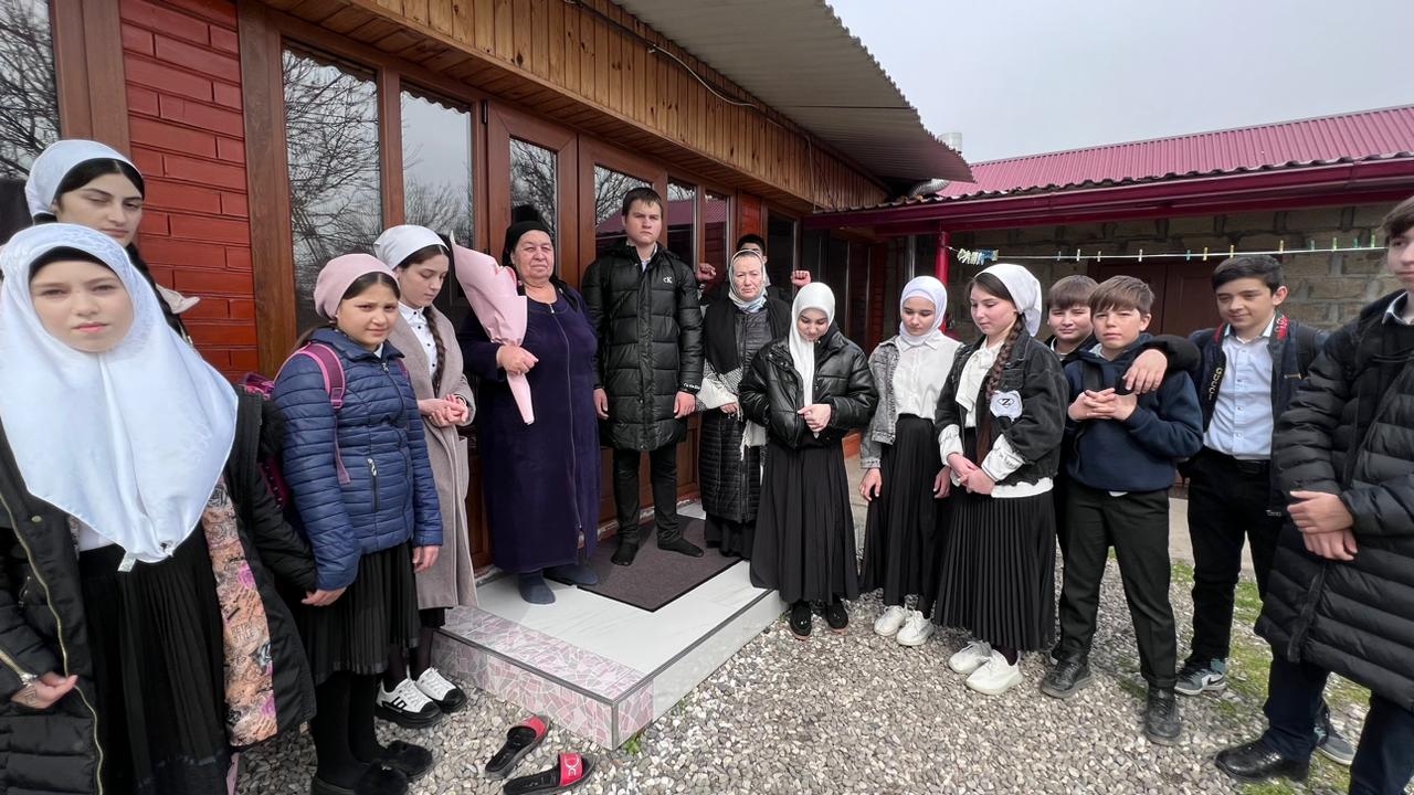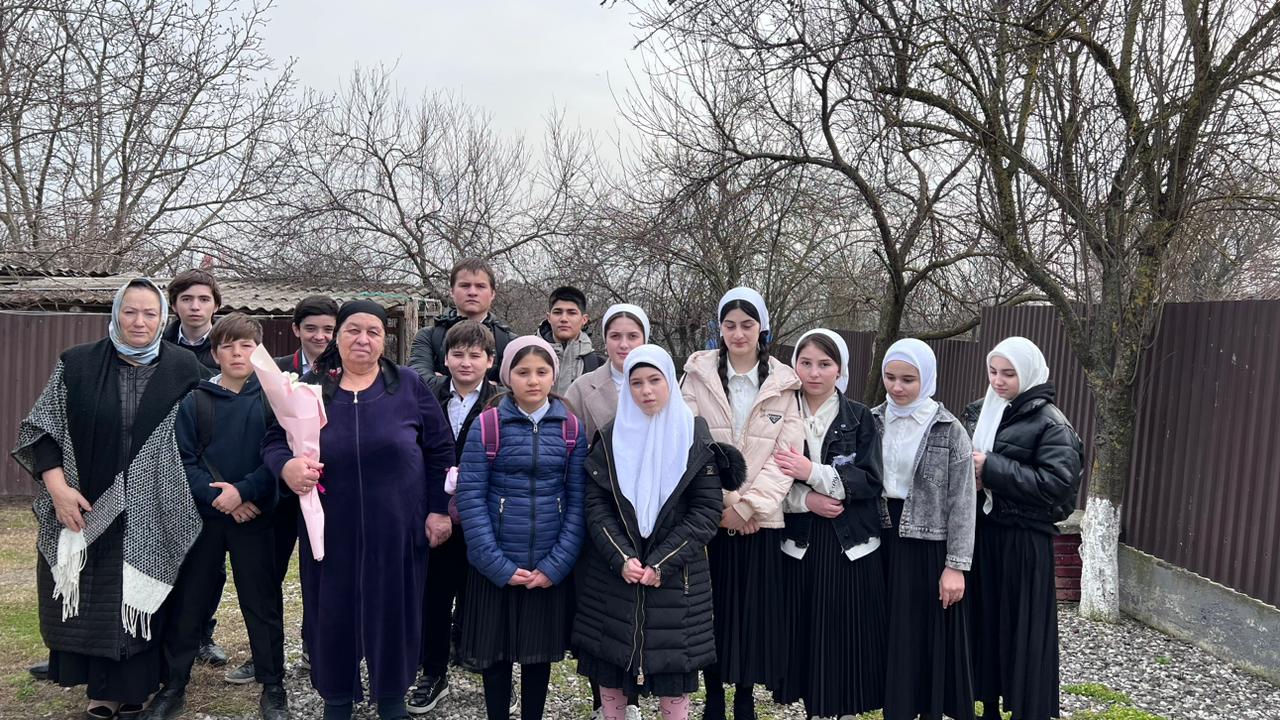 09.03.2023Учащиеся МБОУ "СОШ ст. Ильиновская" вместе с зам.директора по ВР Касымовой З.А, в рамках проекта "Классные встречи" посетили семьи участников СВО Есантукаева Идриса Хусайновича и братьев Зелимхана и Рустама Эскерхановых, поздравили их матерей с Междунардным женским днём. Пожелали им счастья, здоровья, успехов в делах и выразили благодарность за воспитание сыновей-патриоты своей страны.