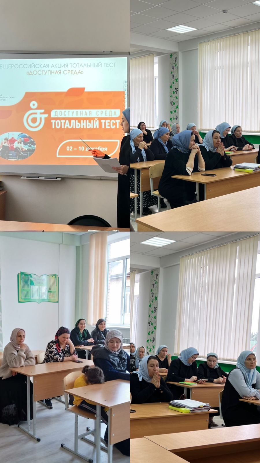 МБОУ СОШ ст.Ильиновская с 2.11.- 3.11.2023г педагог-психолог Касумова Э.А провела собрания с педагогами и родителями, на тему: "Общероссийская акция Тотальный тест "Доступная среда" .