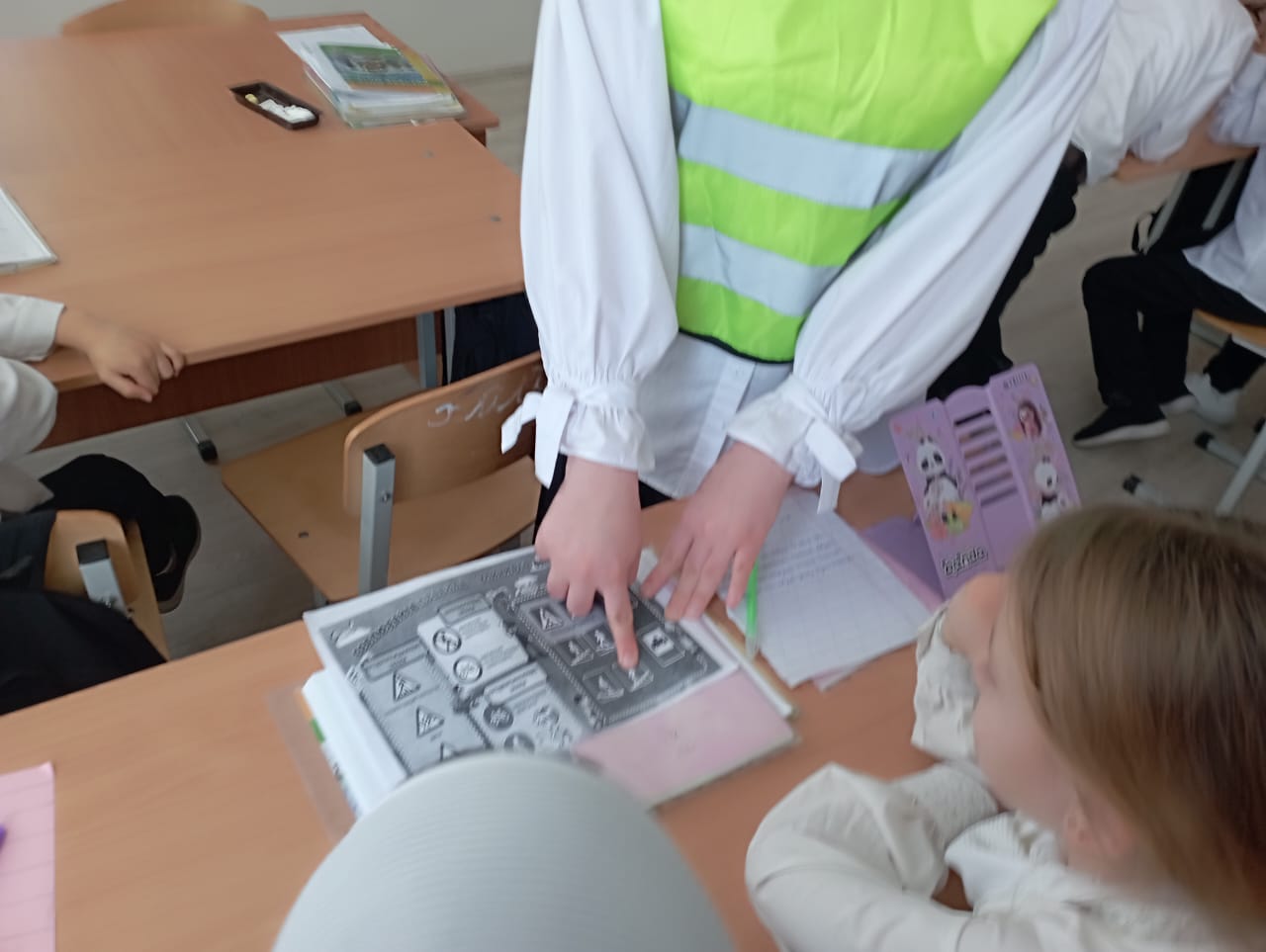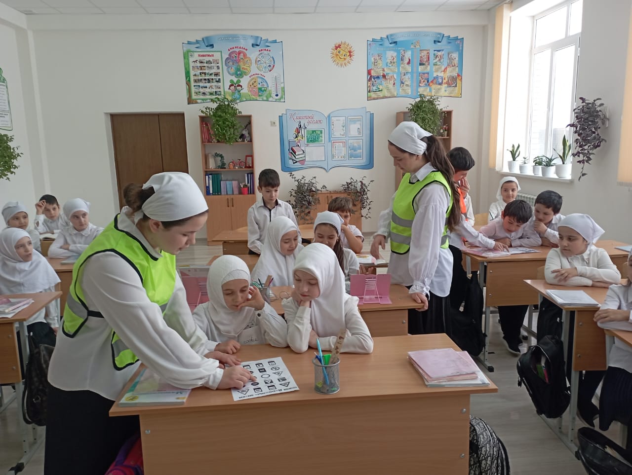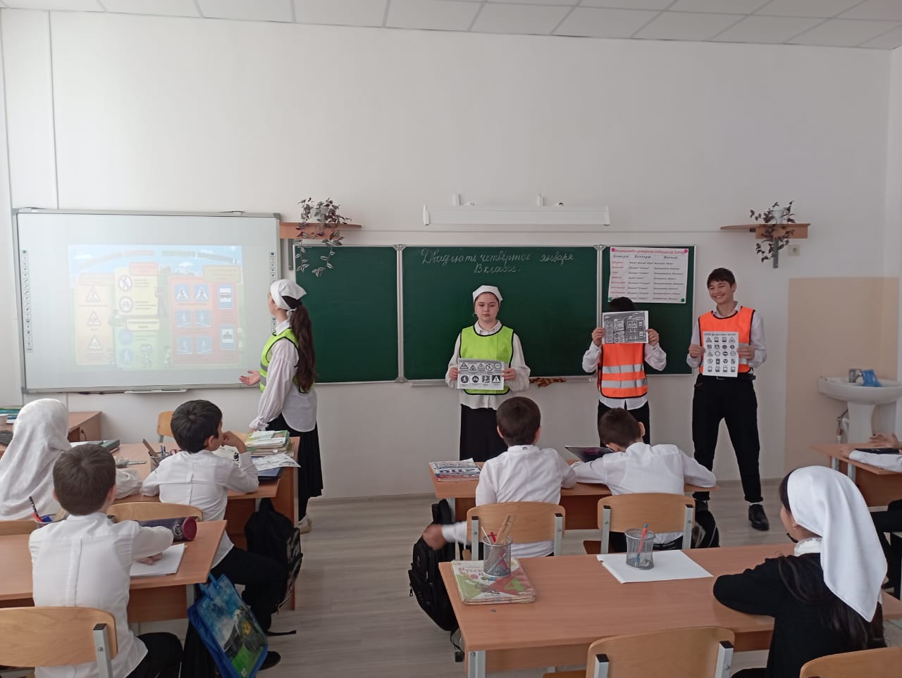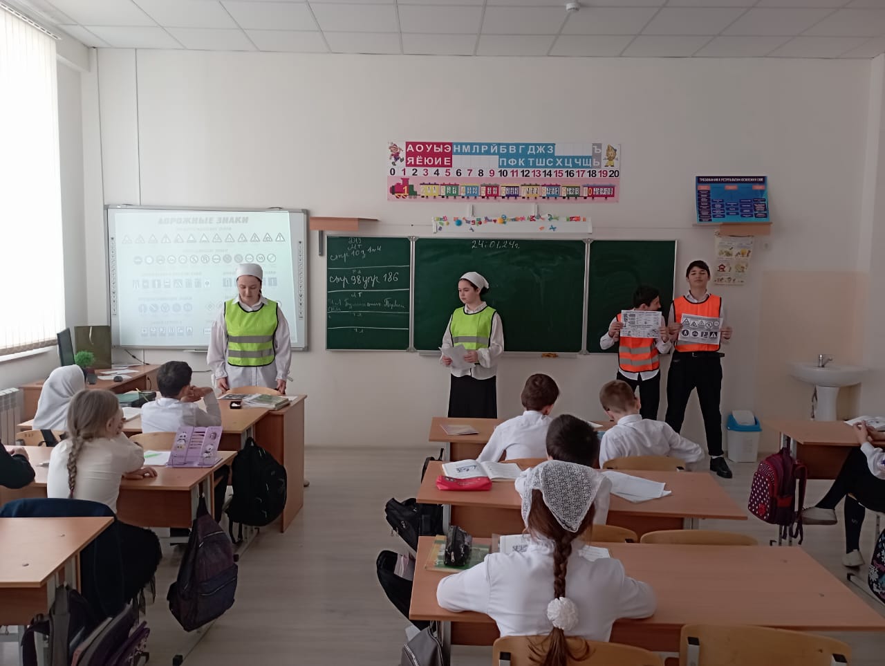 Члены ЮИД провели со школьниками беседу, о правилах поведения на проезжей части. Юные инспектора постарались, чтобы учащиеся младшей школы знали правила дорожного-движения.