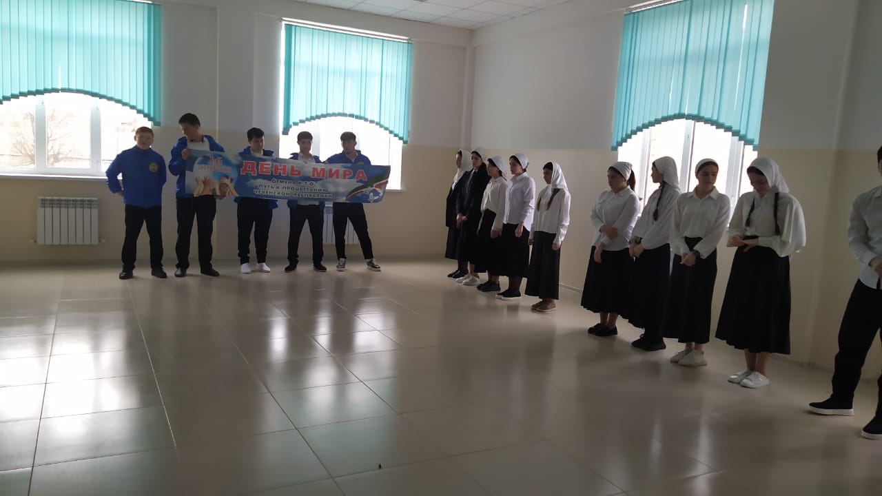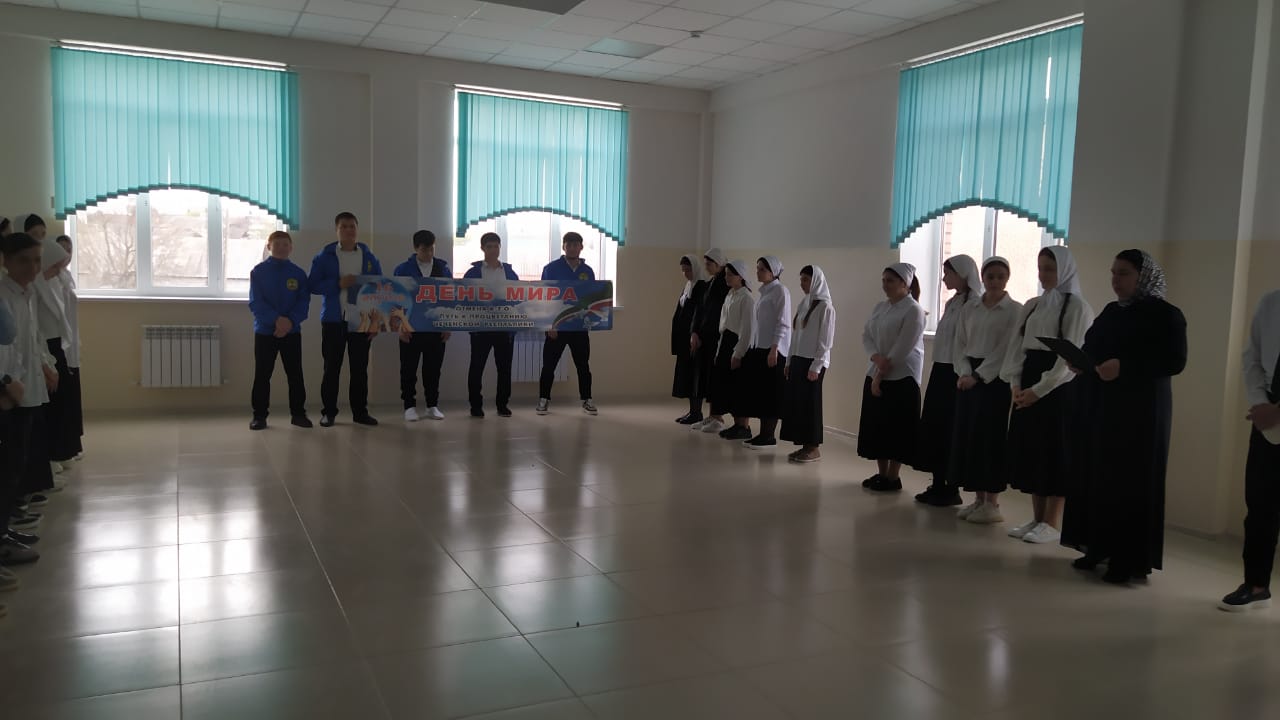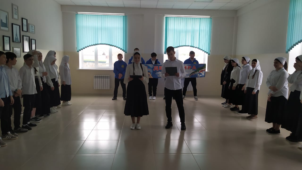 Торжественная линейка приуроченная ко Дню Мира, отмены КТО в Чеченской Республике.