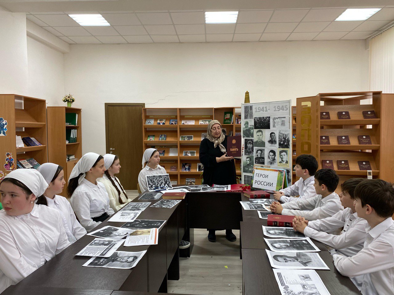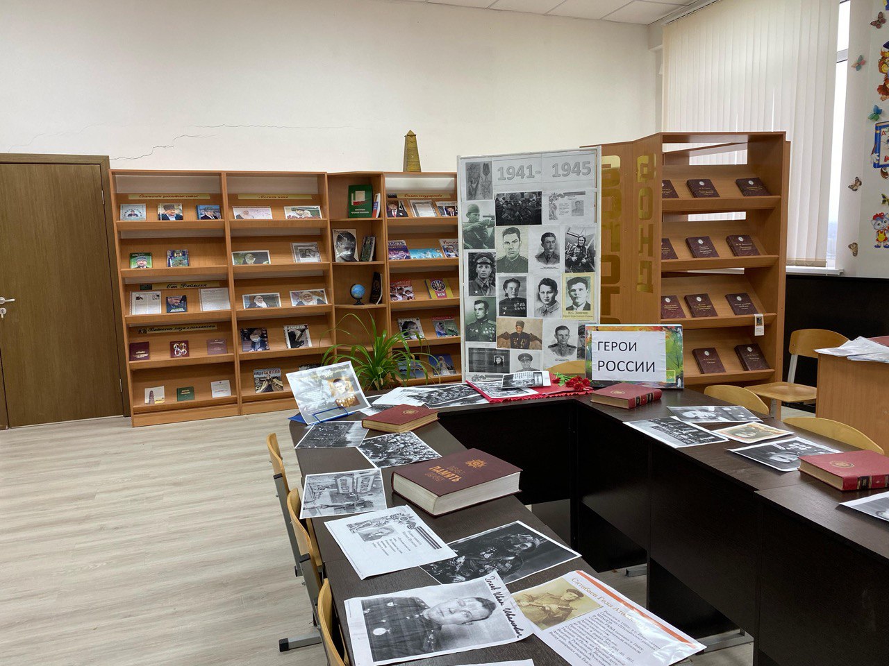 В МБОУ СОШ ст.Ильиновская,, в рамках школьной библиотеки проведена книжнвыставка на тему; "Герои России" посвящённая 80-летию Победы советского народа в Великой отечественной войне.