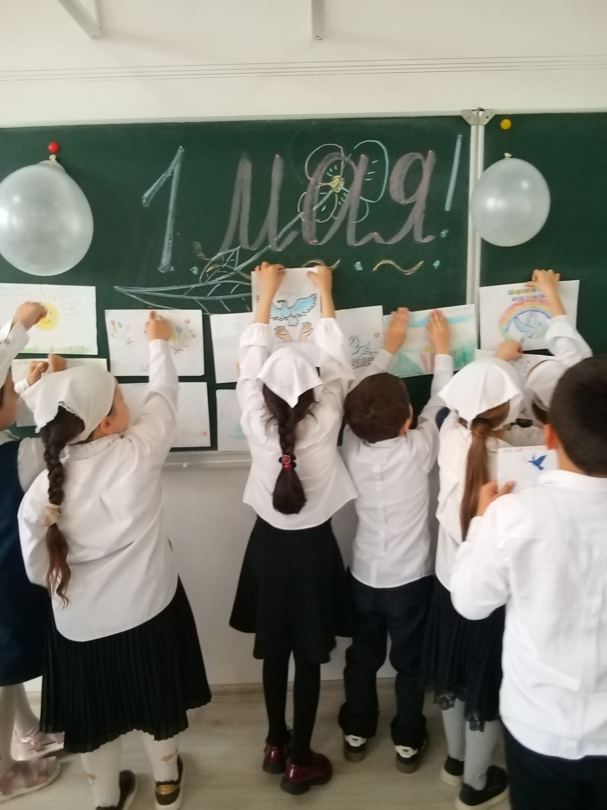 28.04.2025г.Обучающиеся начальных классов приняли участие в детской выставке рисунков на тему:,,Цветы солнца,, приуроченной к празднику 1 Мая.