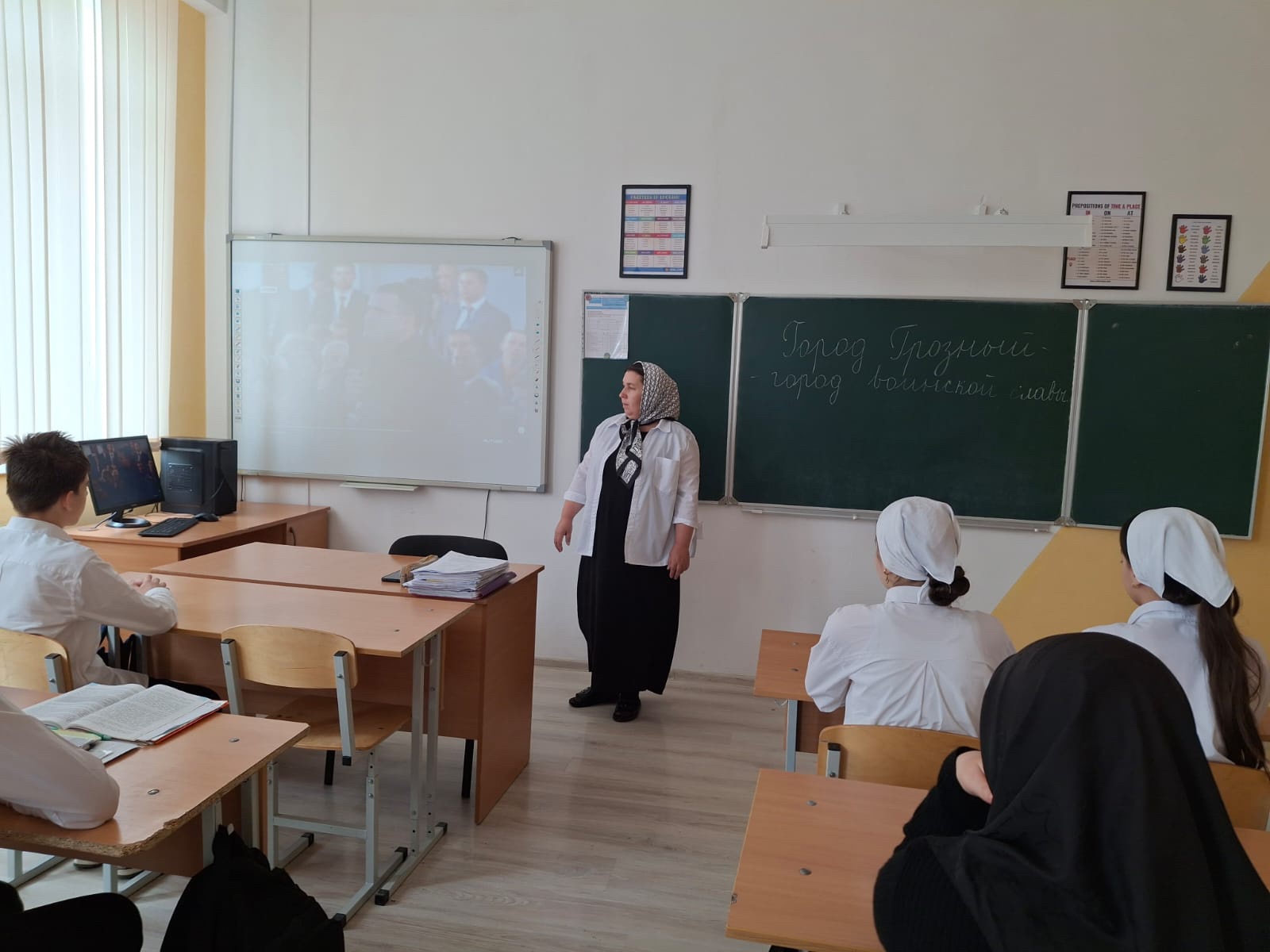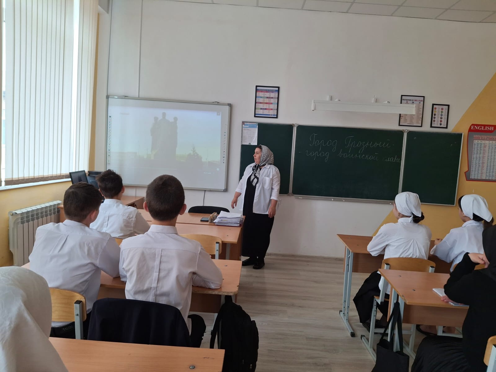О7.05.2025 г.К 80- летио Победе в Великой Отечественной обучающиеся 7 классов МБОУ ,,СОШ ст.Ильиновская,, посмотрели кинолекторий на тему: ,,Город Грозный - город воинской славы,,