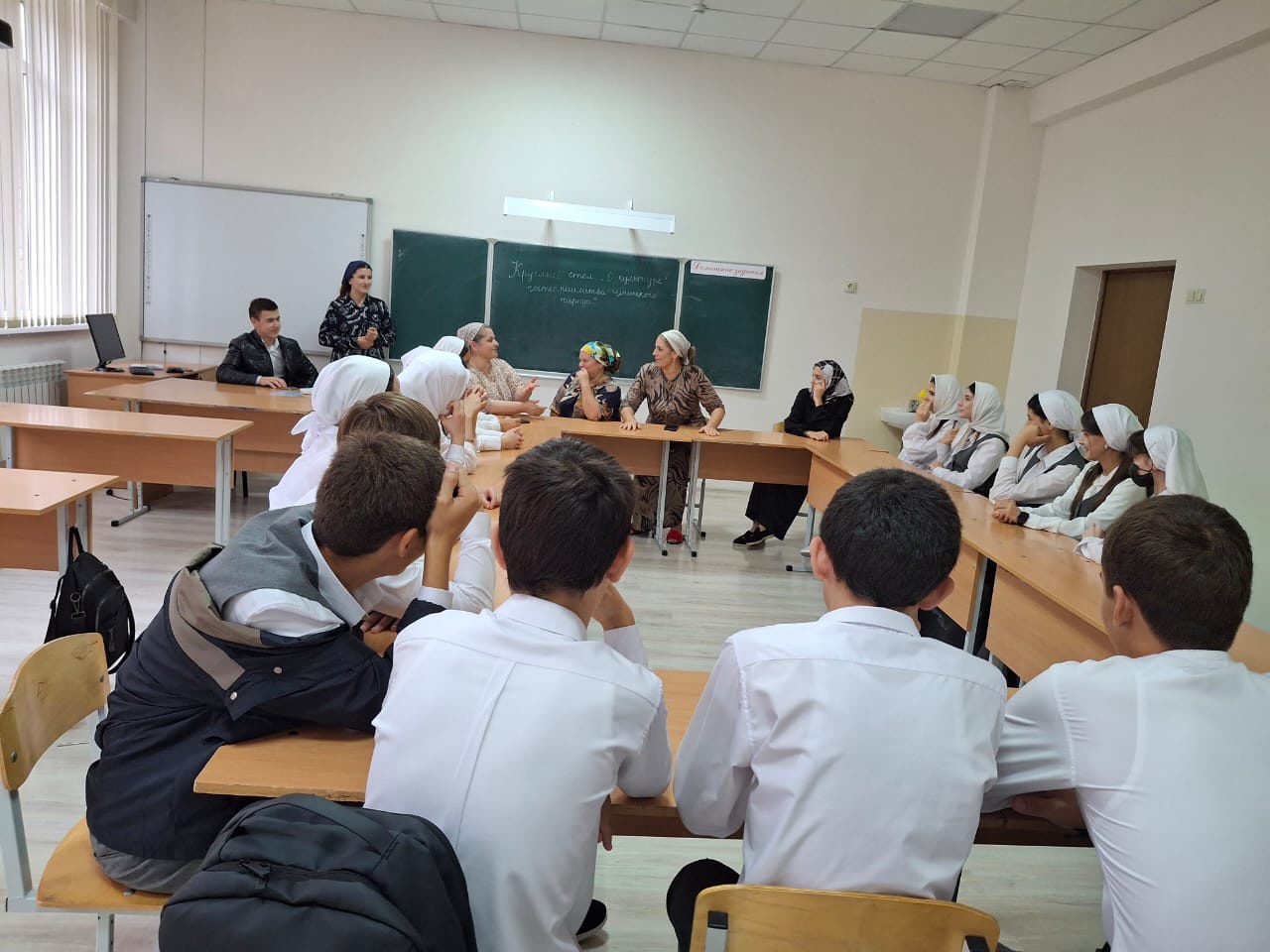 11.09.2025 г.В МБОУ ,,СОШ ст. Ильиновская,, среди учащихся 9-11 классов был проведён круглый стол на тему: ,,О культуре гостеприимства чеченского народа,,. На круглый стол были приглашены родители,учителя чеченского языка и литературы, педагог- психолог, которые выступили перед обучающимися повопросам семейных ценностей, старинных обычаев и традиций чеченцев.В рам11.09.2025 г.В МБОУ ,,СОШ ст. Ильиновская,, среди учащихся 9-11 классов был проведён круглый стол на тему: ,,О культуре гостеприимства чеченского народа,,. На круглый стол были приглашены родители,учителя чеченского языка и литературы, педагог- психолог, которые выступили перед обучающимися повопросам семейных ценностей, старинных обычаев и традиций чеченцев.В рамках круглого стола был представлен доклад учителя чеченского языка Байхановой М.А. на тему: ,,Забытая красота обрядов гостеприимства: как чеченцы встречали гостей,,