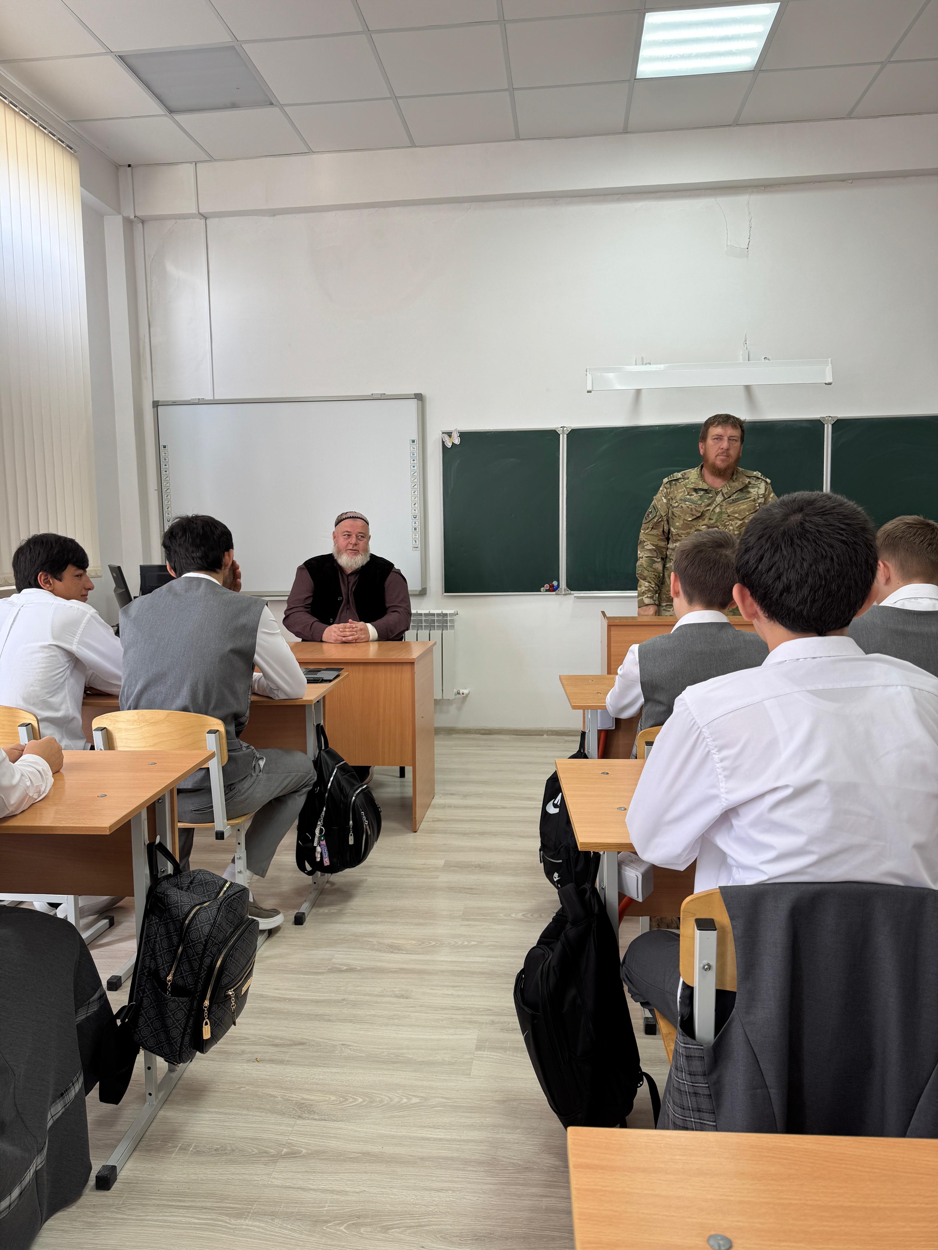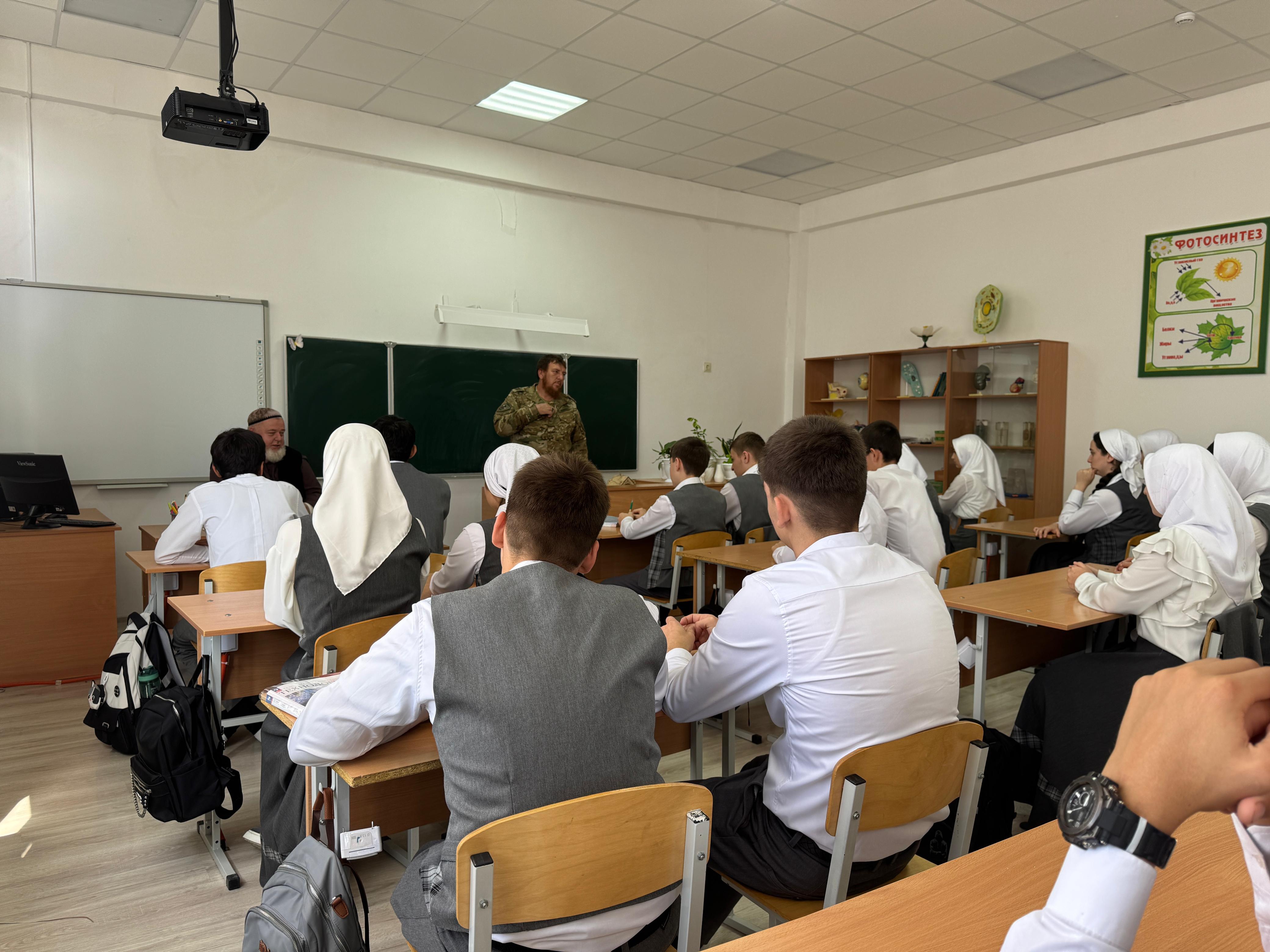 15.09.2025 г.В МБОУ ,,СОШ ст. Ильиновская,, состоялась встреча старшеклассников с участником СВО Муцуровым Исламом, бывшим выпускником школы. Он рассказал о предпосылках возникновения вооружённого конфликта на востоке Украины, о своём боевом опыте.Ребята слушали гостя с интересом и задавали ему вопросы.Встреча была волнительной и запоминающейся.На конкретном примере дети увидели, что настоящие герои живут рядом, что мужество, храбрость, любовь к Родине- это качества настоящего человека.