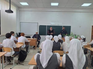 16.09.2025 г.В МБОУ,,СОШ ст.Ильиновская,, состоялся семинар, посвящённый профилактике экстремизма и терроризма в молодёжной среде.В беседе с учащимися 9-11 классов приняли и участие имам ст.Ильиновская Тимирсултанов А.М , инспектор ПДН Сангиреав А Р. И представитель совета тарейшин села. Испектор ПДН рассказал школьникам о том. что пособничество экстремистам в любой форме влечёт за собой уголовную ответственность, что экстремисты в основном вербуют молодёжь с помощью социальных сетей, и призвал их быть предельно осторожными и не давать незнакомым людям номера своих мобильных телефонов.