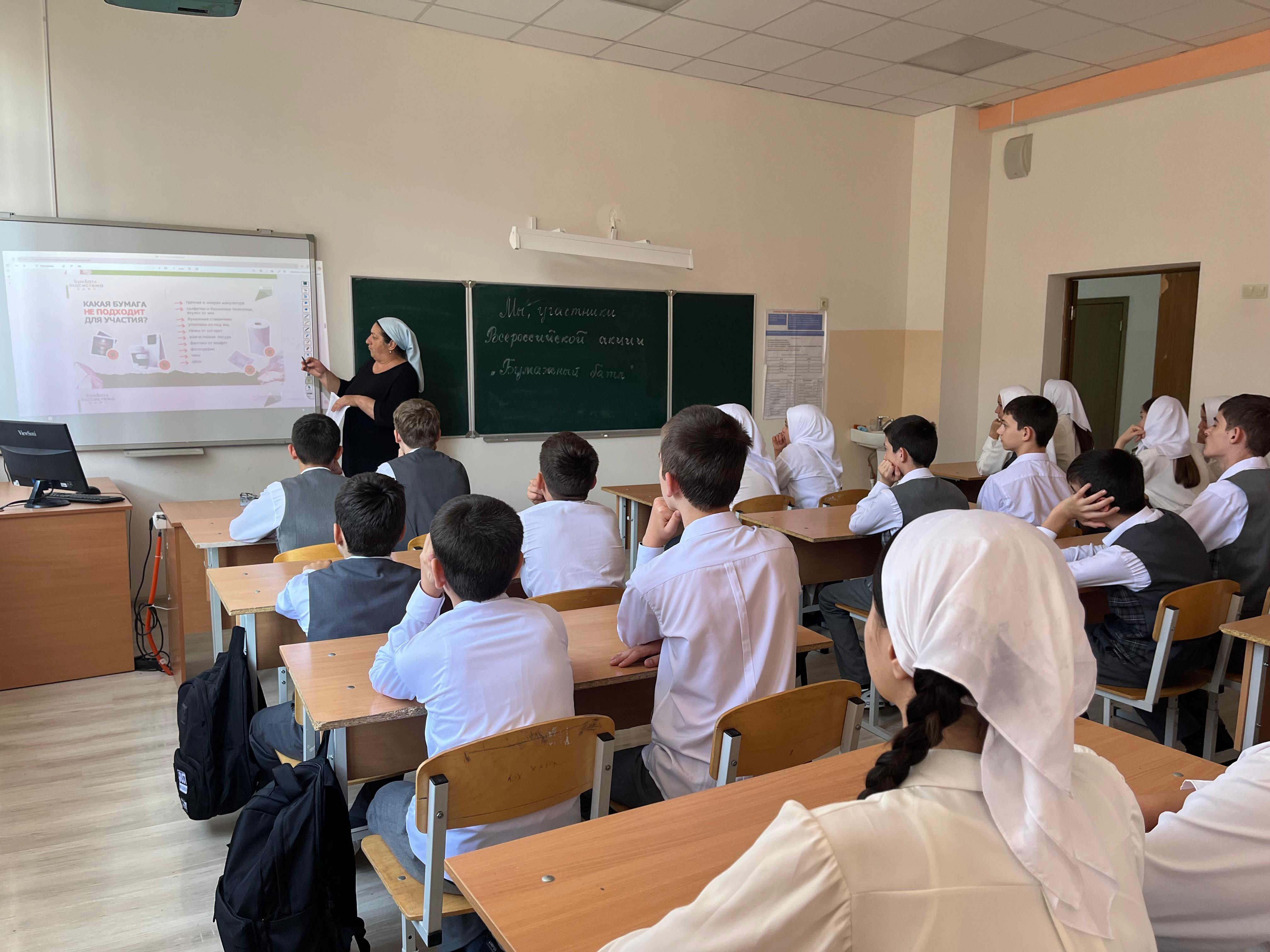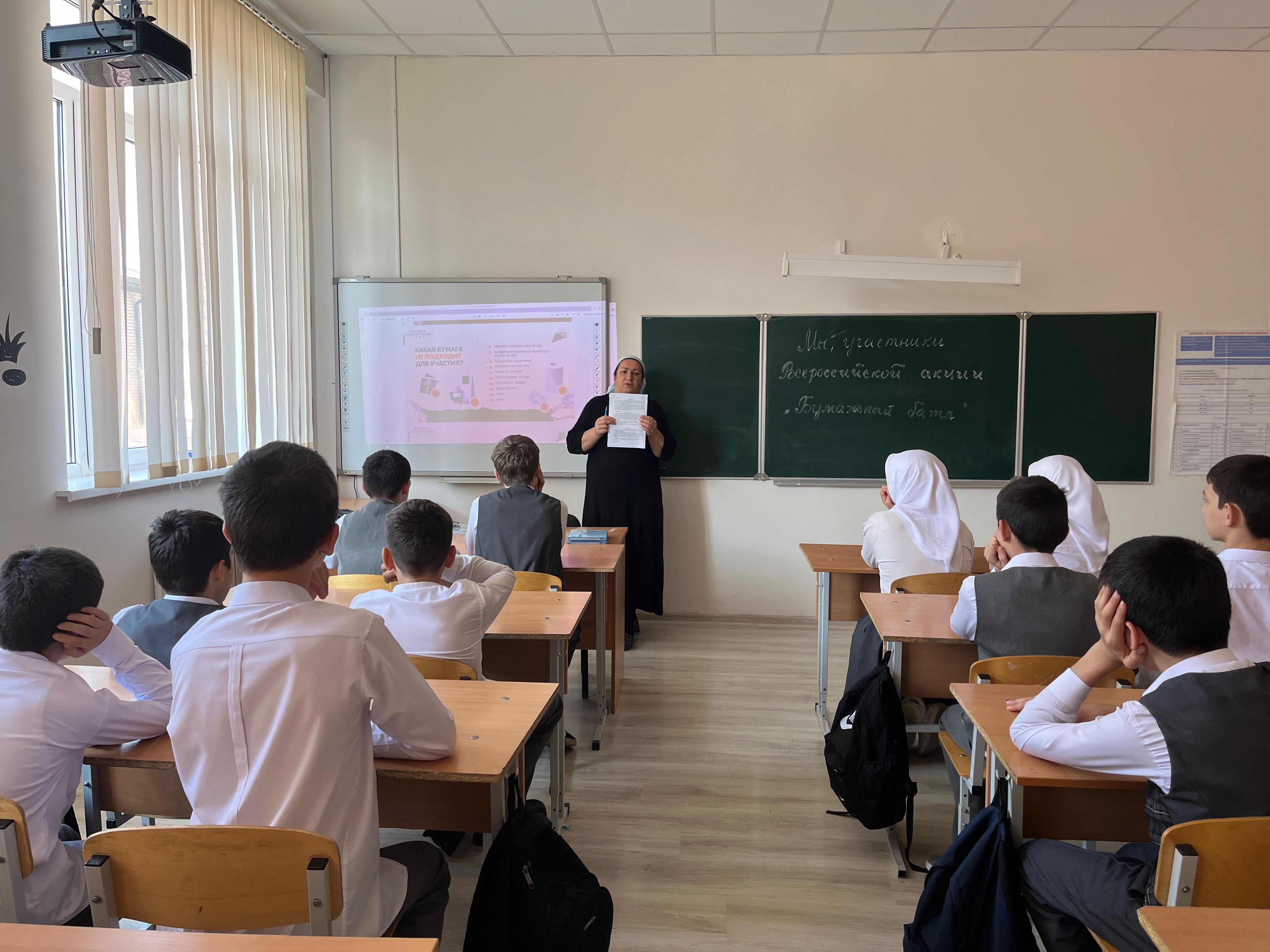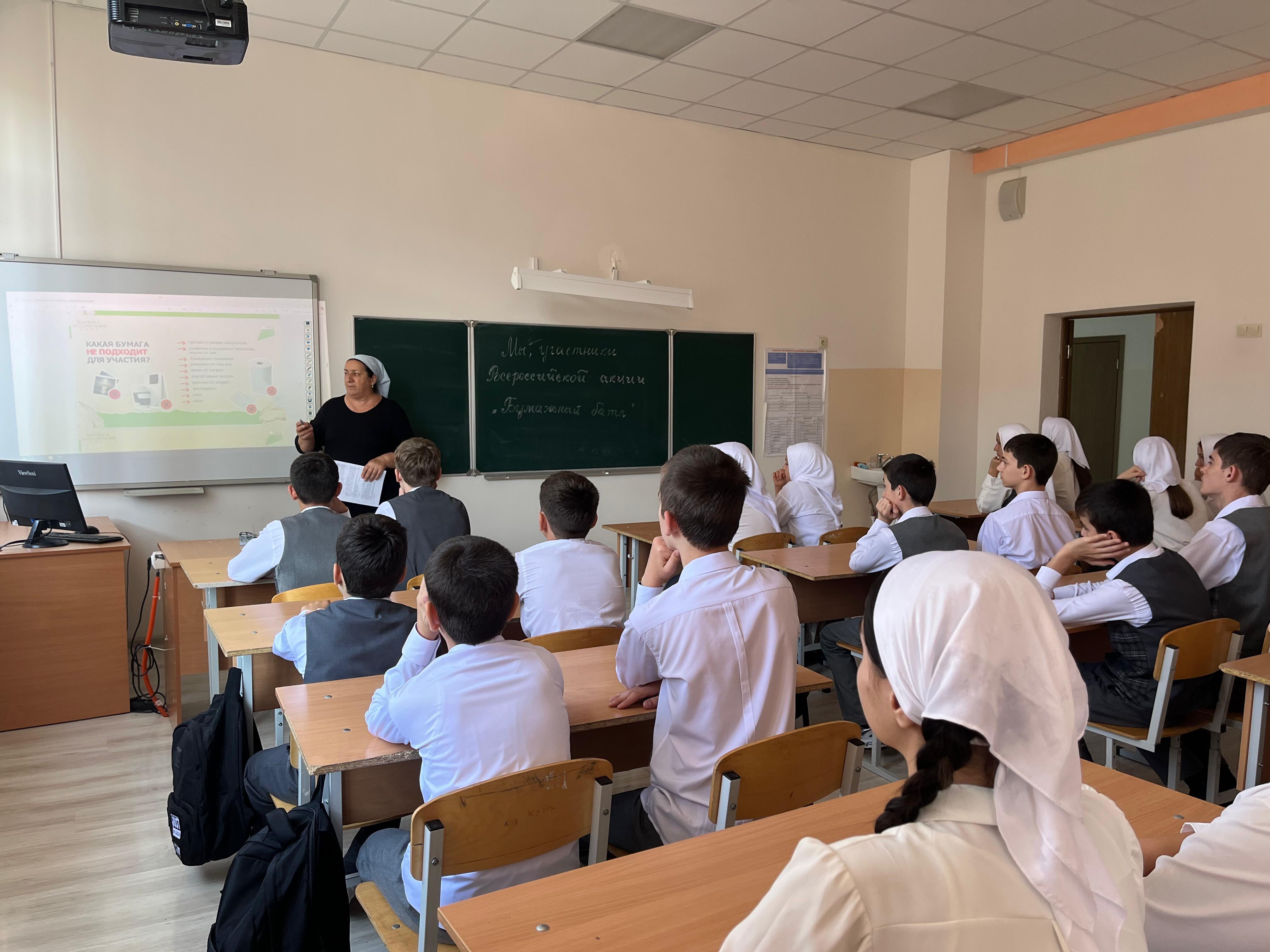 Начался осенний сезон Всероссийской акции по сбору макулатуры " БумБатл" .Цель акции -формирование экологической культуры у подрастающего поколения, молодёжи и всего населения страны. С учащимися школы проведено очередной занятие с обсуждением целей и задач акции, формирования экологической культуры бережного отношения к природе.Так же запланированы уроки экоуроки на тему раздельного сбора отходов.