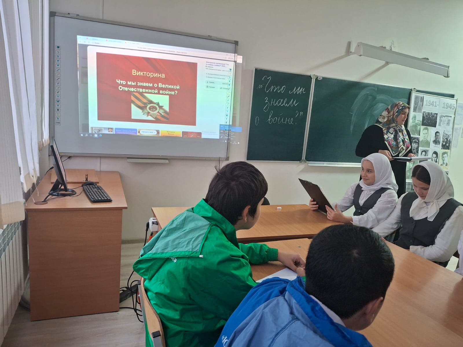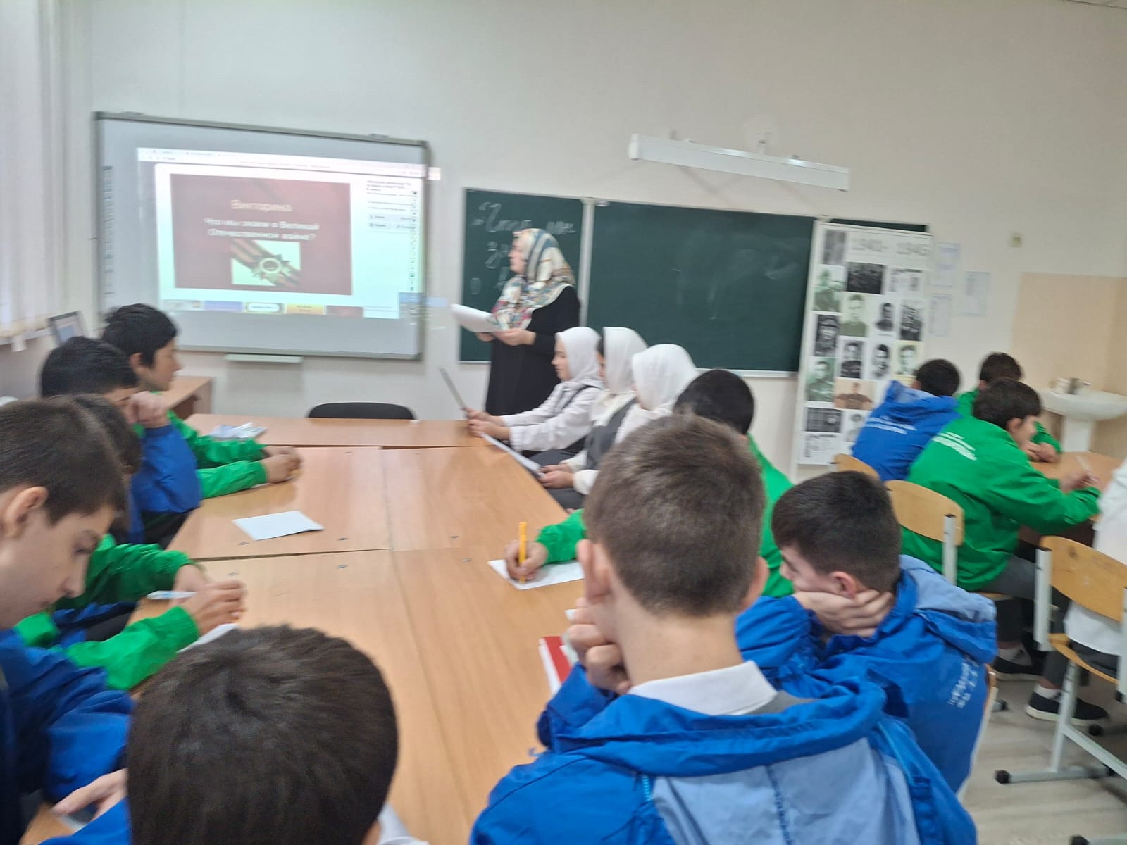 17.11 2025 г.В МБОУ,,СОШ ст.Ильиновская,, в рамках Года защитника Отечества состоялась викторина ,,Что мы знаем о войне,, в которой в качестве ведущей стороны приняла участие команда ,,юных кадыровцев,,.Мероприятие было направлено на рас ширение знаний учащихся о событиях Великой Отечественной войны, а таеже на воспитание чувства гордости и уважения к ветеранам.Учащиеся смогли глубже погрузиться в историю, узнать о подвигах советского народа и осознать важность сохранения памяти о тех, кто защищал Родину.