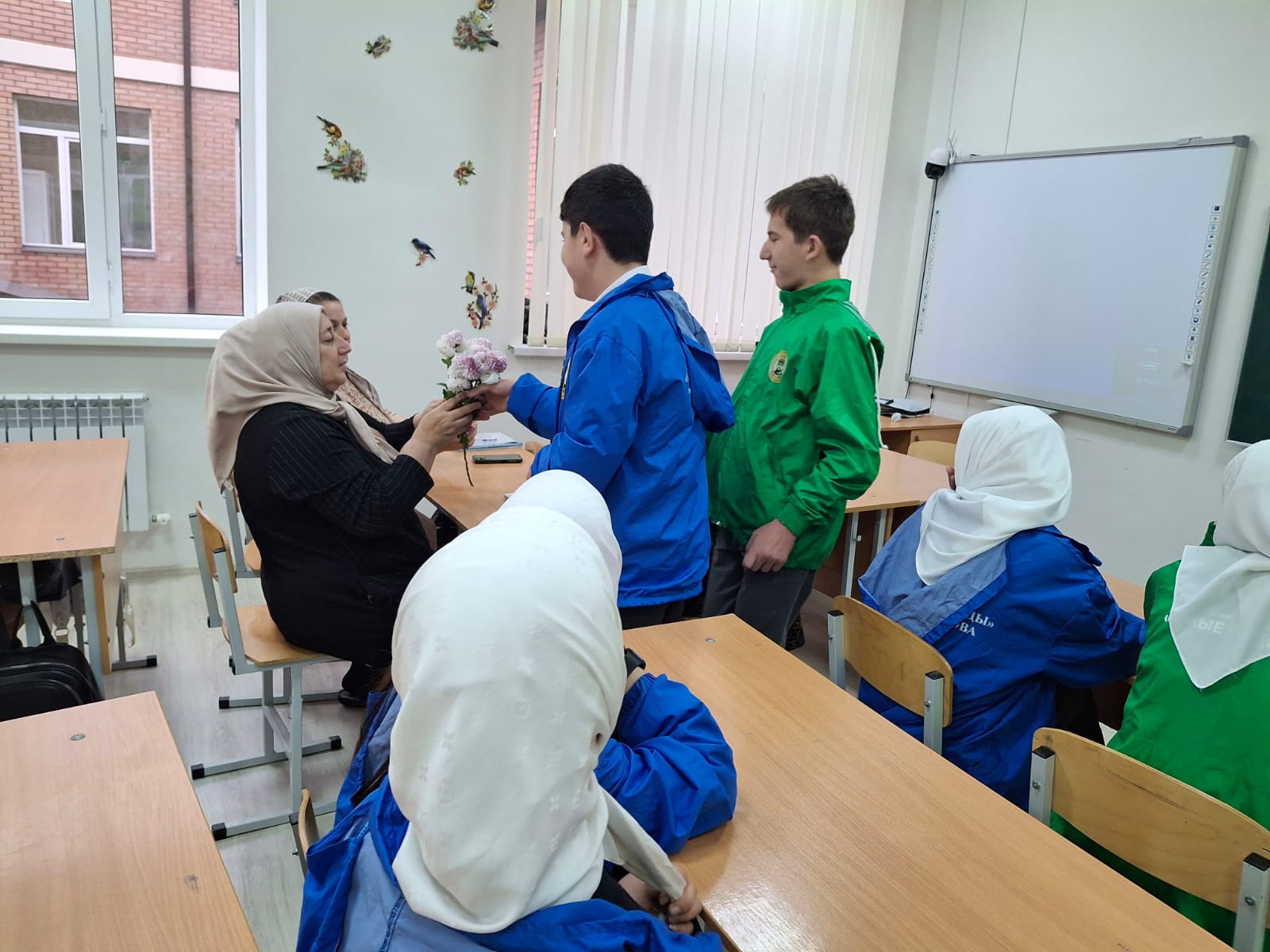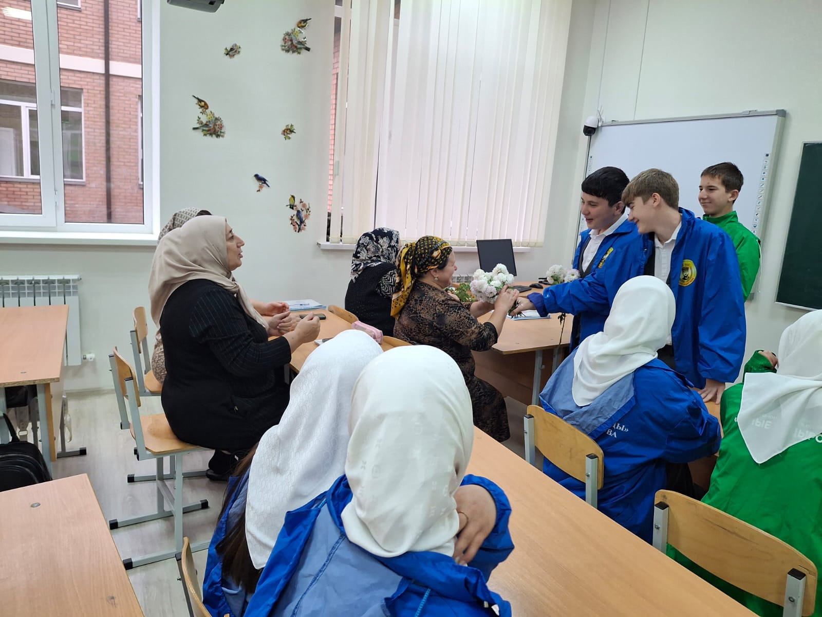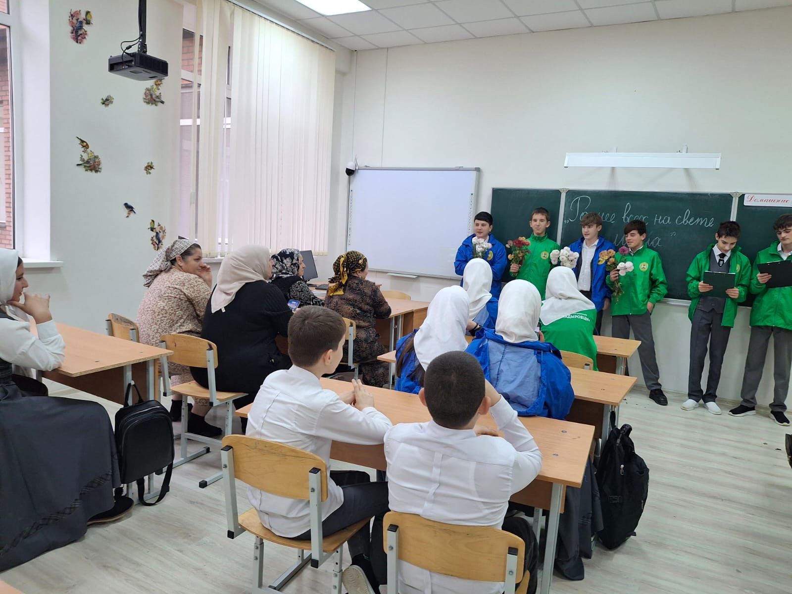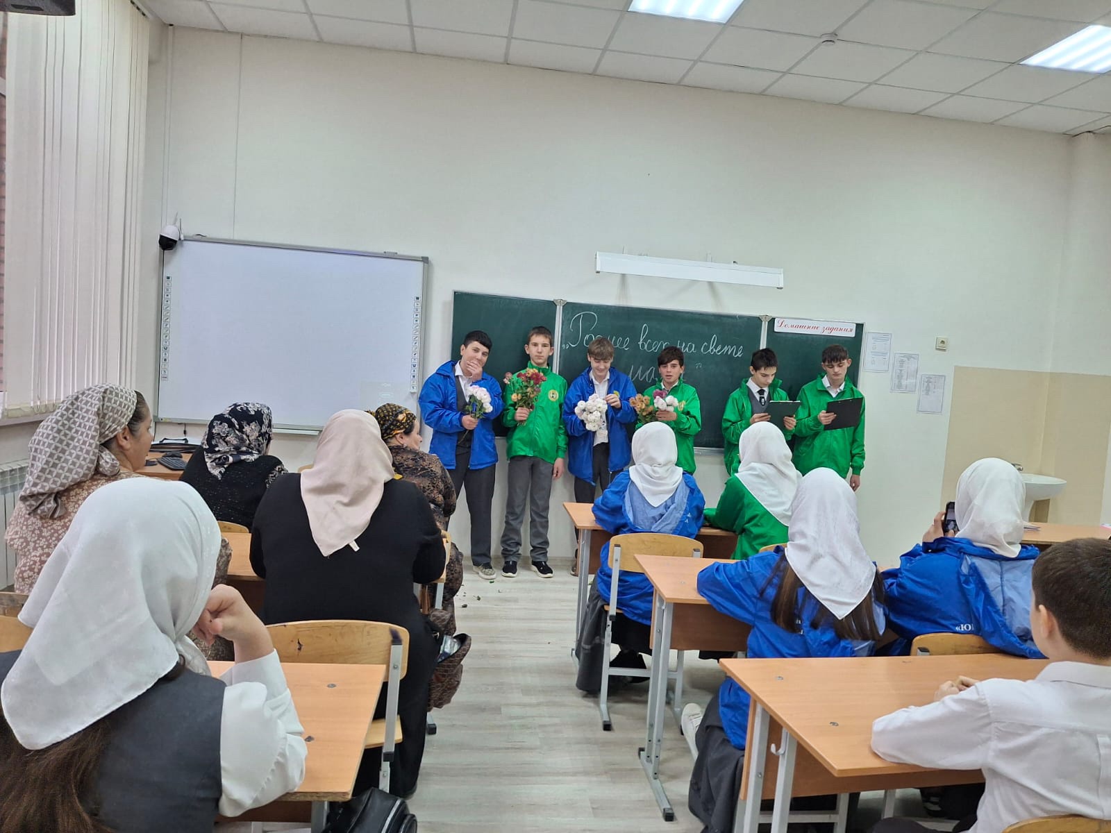 24 11.2025 г.В МБОУ,,СОШ ст.Ильиновская,, ко Дню матери ,,юные кадыровцы,, организовали тематический вечер ,,Роднее всех на свете- мама,,,куда были приглашены мамы активистов.Для приглашённых мам были исполнены стихи песни,в их адрес прозвучали трогательные слова, выражающие любовь и благодарность мамам, были подарены прекрасные букеты хризантем и открытки.Цель мероприятия- сформировать у детей уважение к материнству, укрепить семейные узы, создать тёплую праздничную атмосферу.